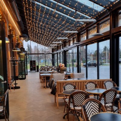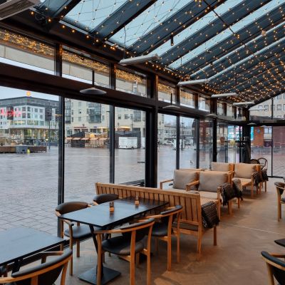 Terrazza-lasiterassit valmistetaan mittajoustavina ravintolatiloihin. Järjestelmään voidaan valita joko liukuovet tai saranoidut ovet. Alumiinista valmistetut profiilit voidaan maalata jauhemaalausmenetelmällä RAL Classic -värikartaston mukaisilla sävyillä. Lasipinnoiksi voit valita erilaisia laseja käyttökohteen mukaan ja laseihin voidaan teipata huomioteippaukset tai yrityksen graafisen ohjeen mukainen ilme.